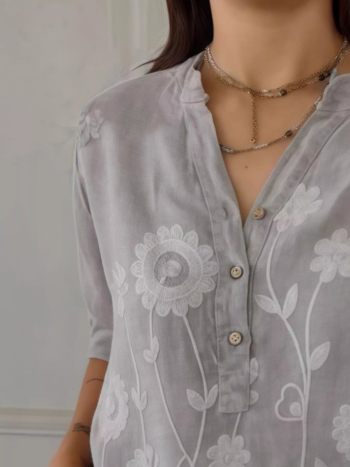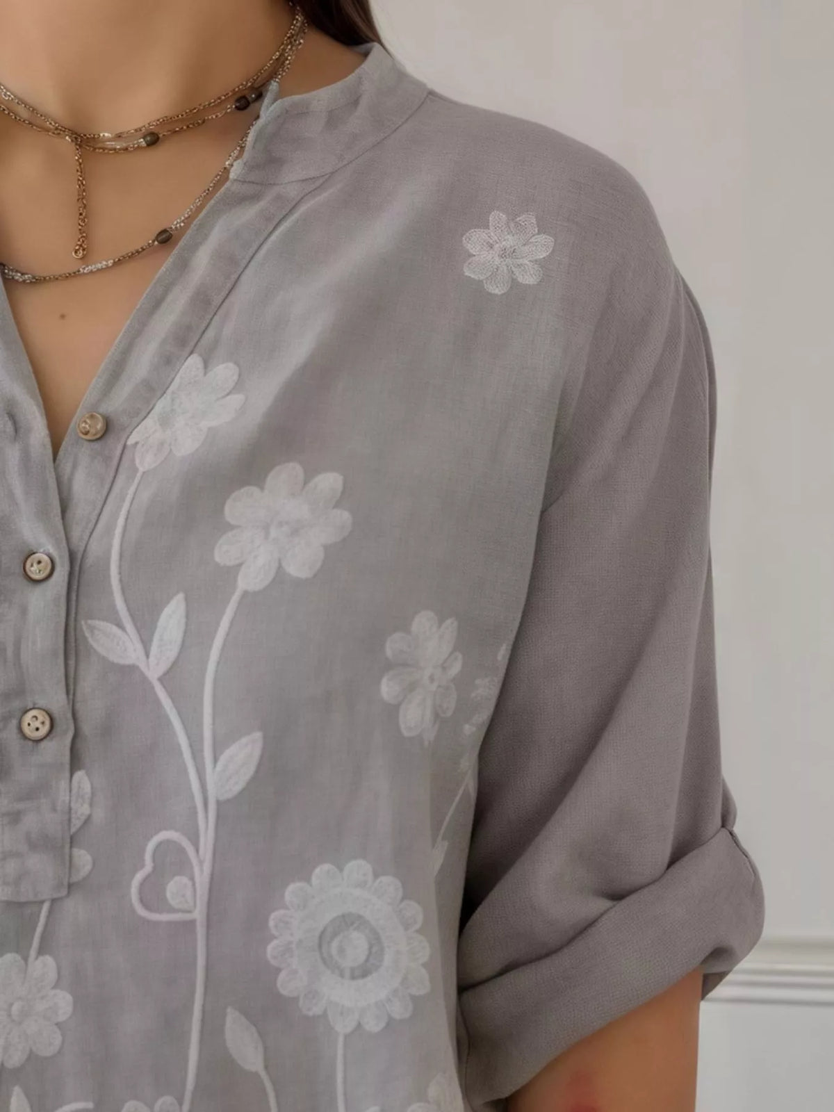Full Size Floral Embroidered Button Detail Blouse Plus Size