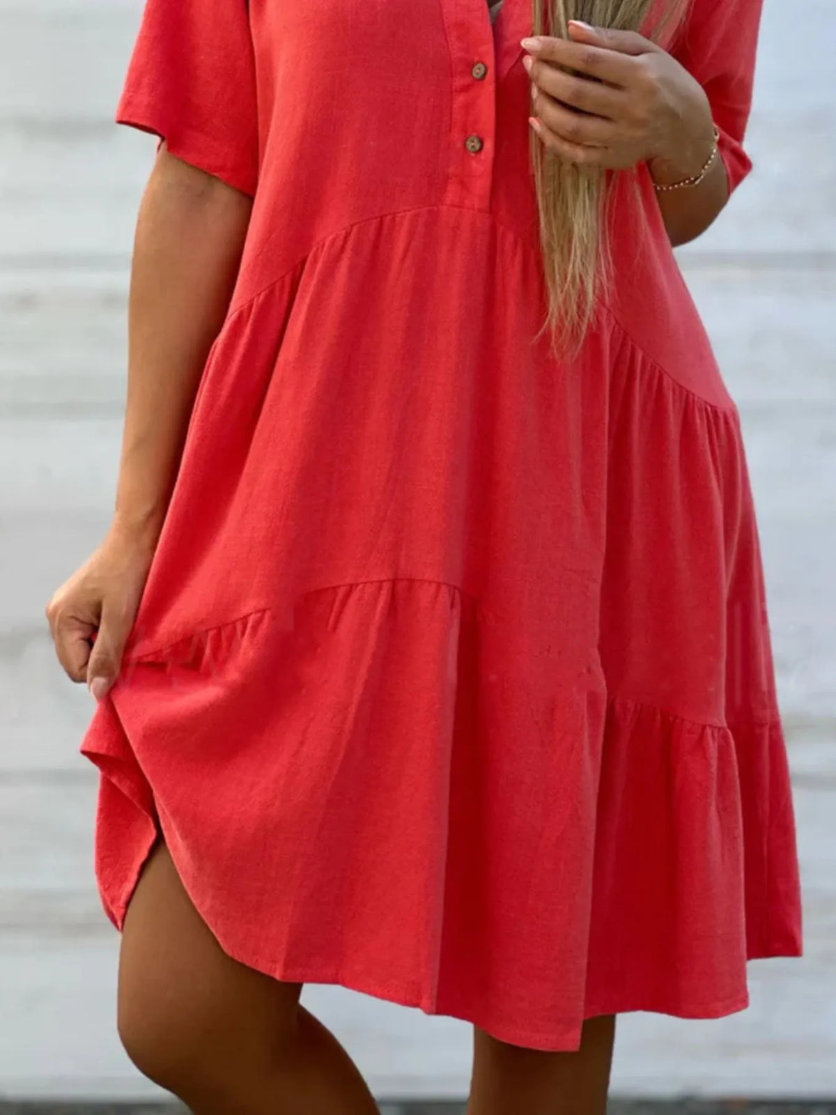 Full Size Tiered Button-Front Short Sleeve Dress Plus Size