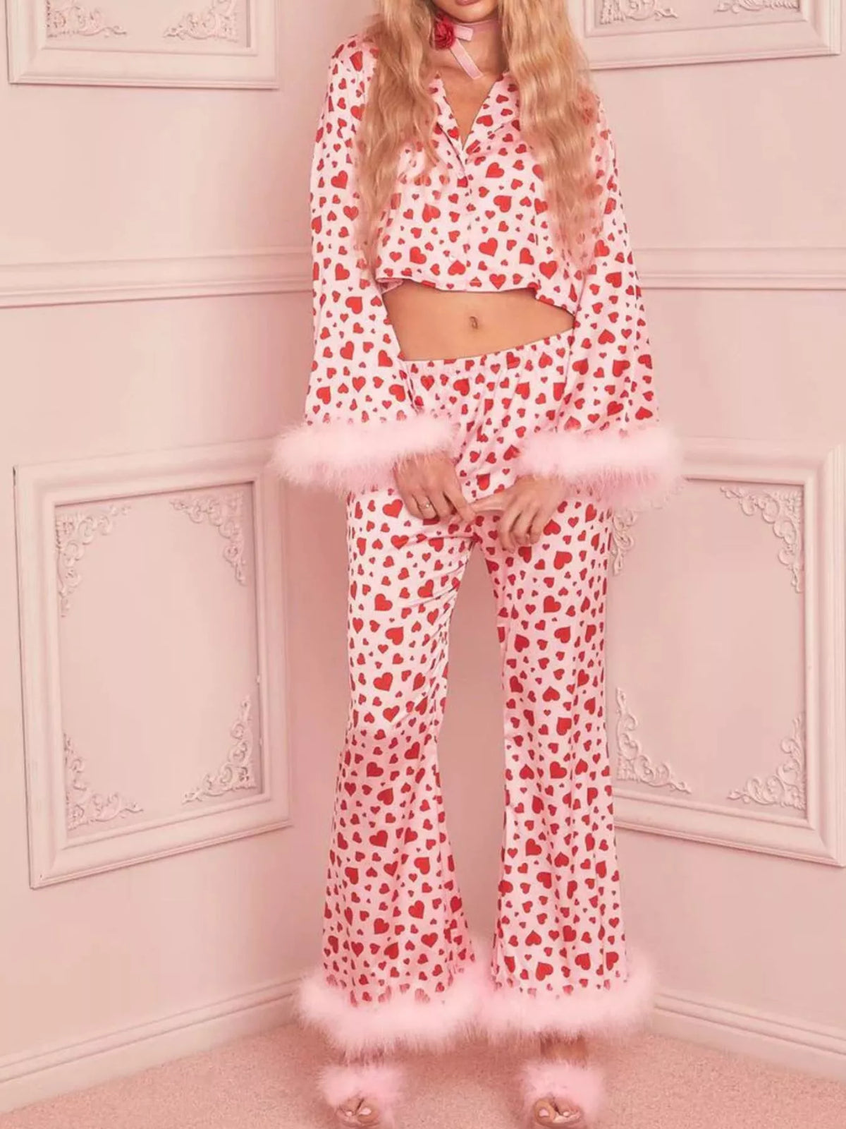 Heart Print Long Sleeve Top and Pants Lounge Set