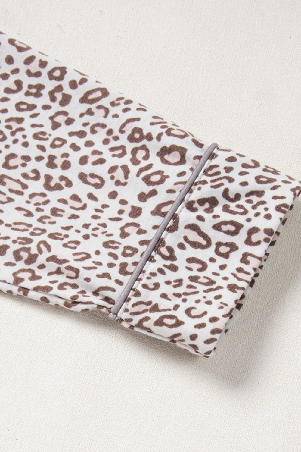 Leopard Button Down Long Sleeve Top and Pants Lounge Set