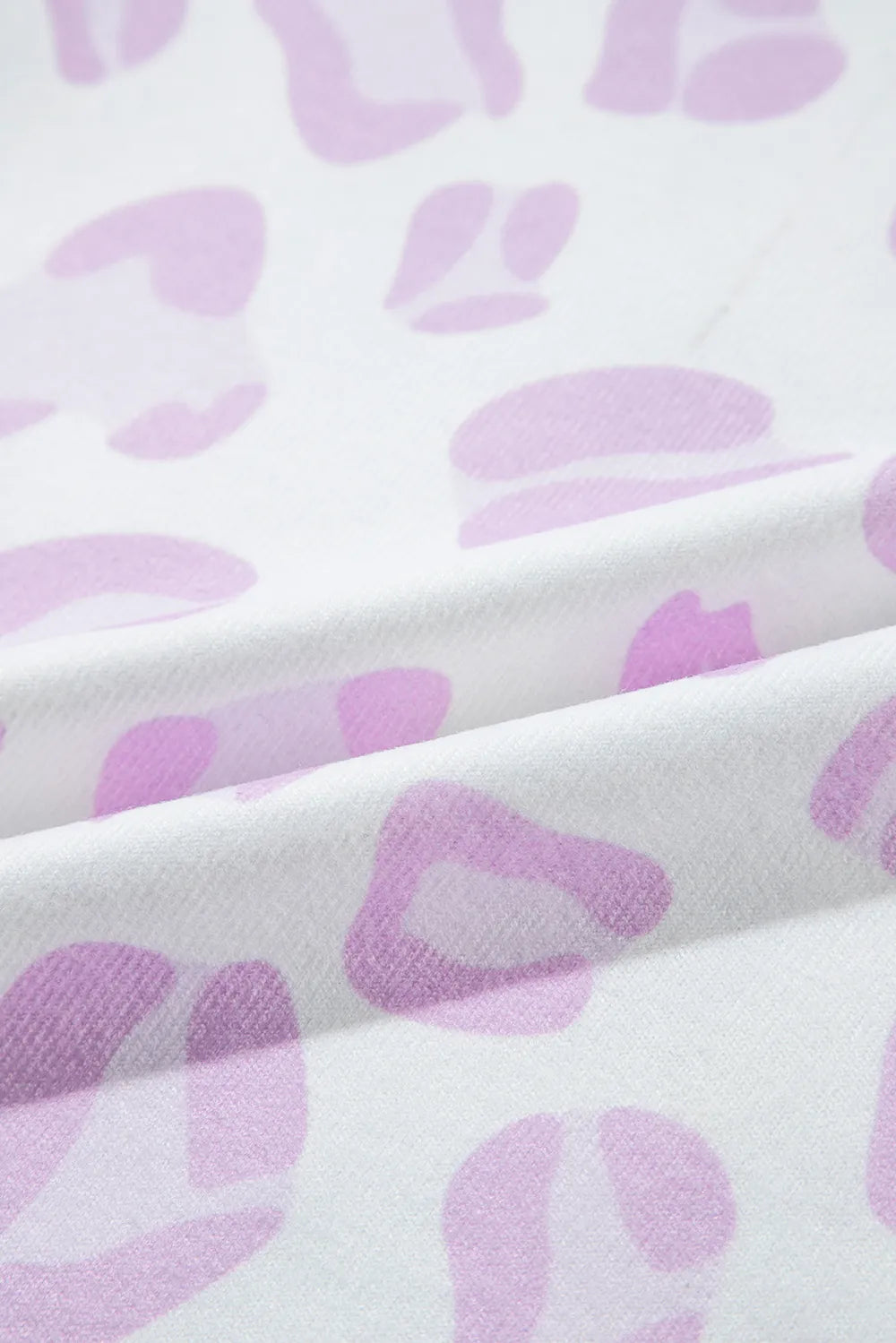 Leopard Long Sleeve Top and Drawstring Shorts Lounge Set