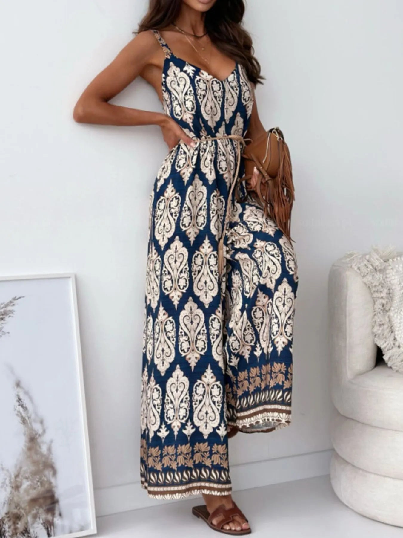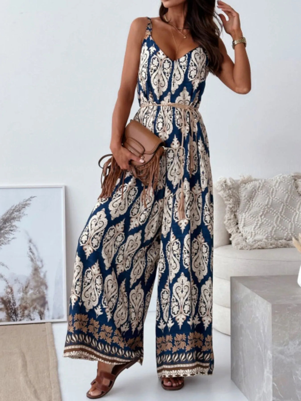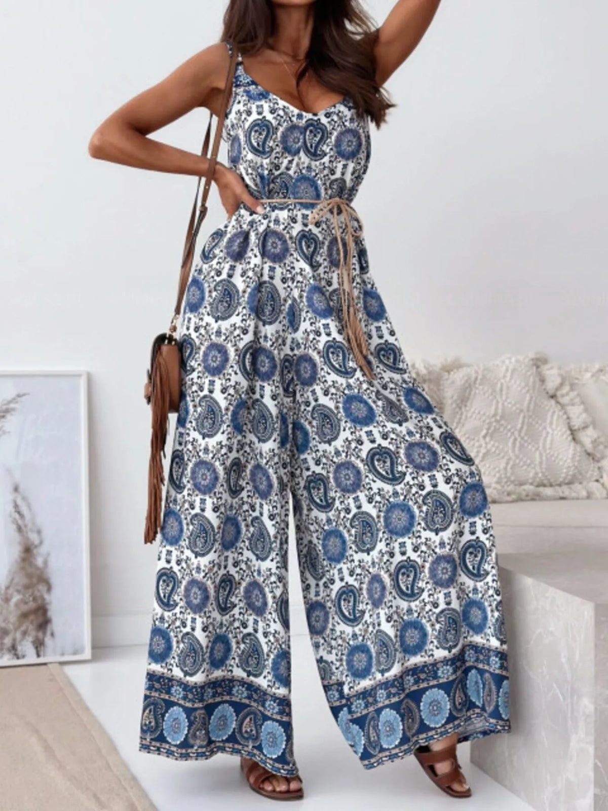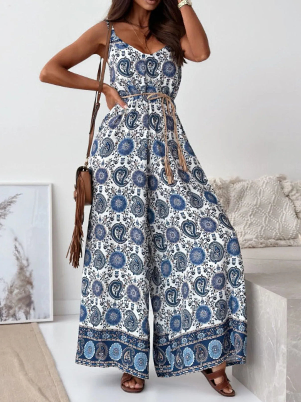 Paisley Print Spaghetti Strap Wide Leg Jumpsuit