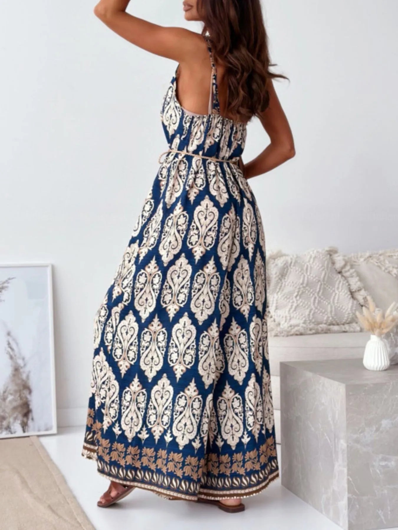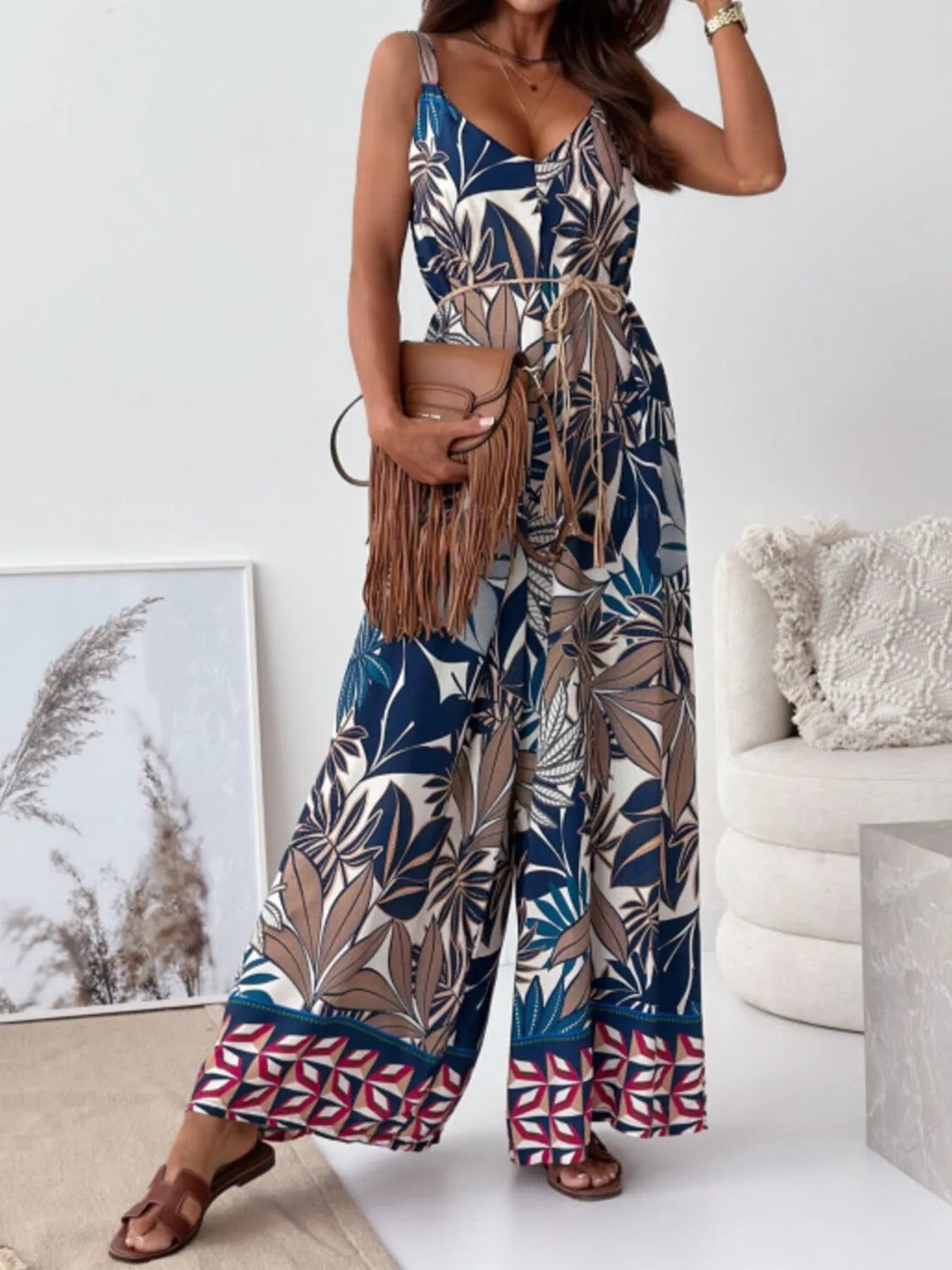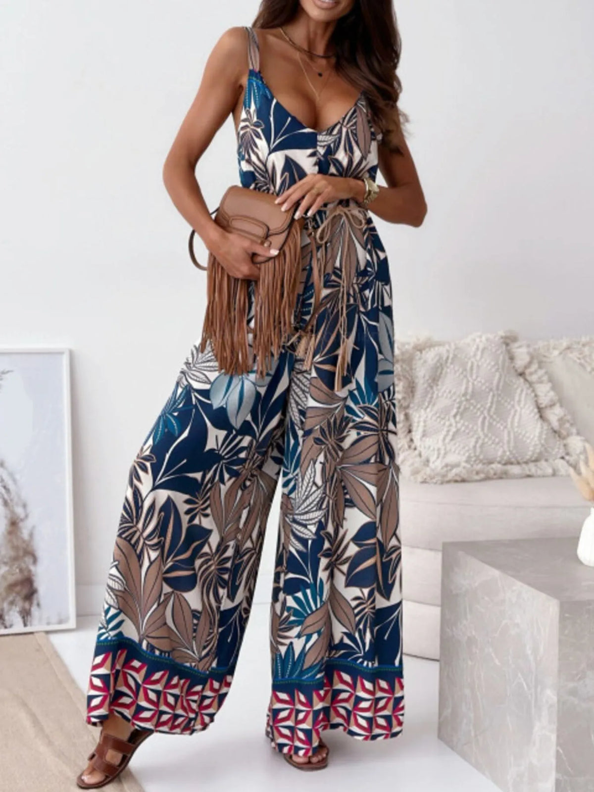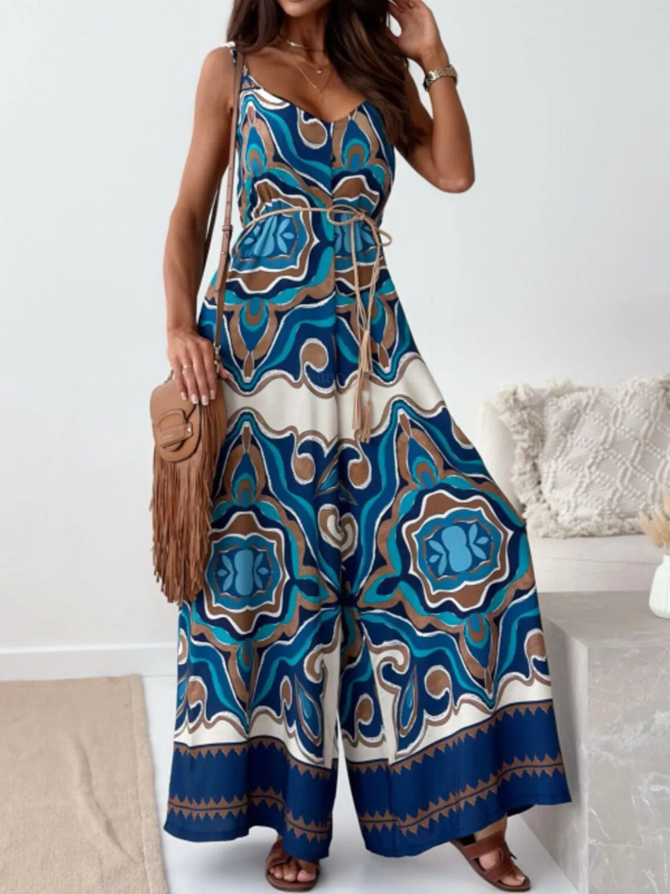Paisley Print Spaghetti Strap Wide Leg Jumpsuit
