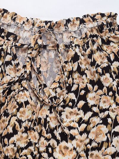 Perfee Printed Tie Neck Long Sleeve Mini Dress
