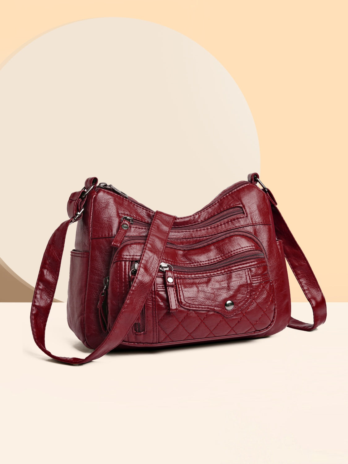 PU Leather Multi Pockets Adjustable Strap Shoulder Bag