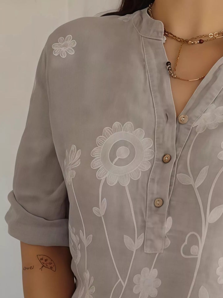 Full Size Floral Embroidered Button Detail Blouse Plus SizeRegular price €21,95