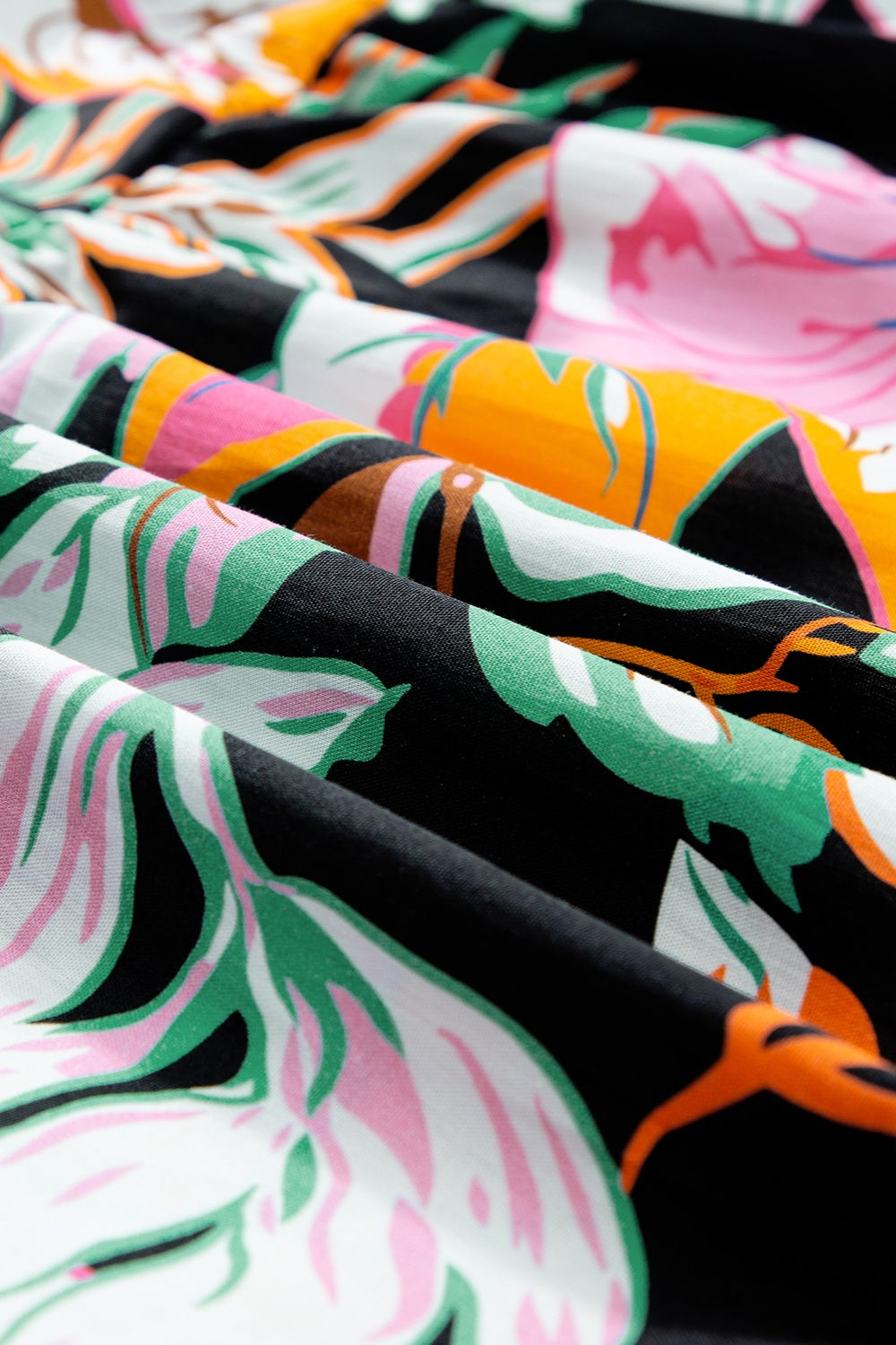 Plus Size Printed Tie Neck Short Sleeve Blouse