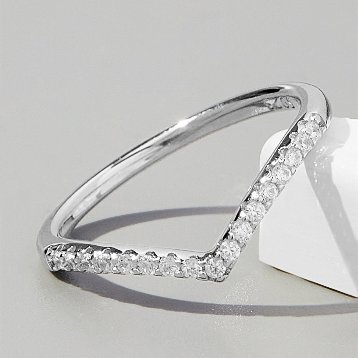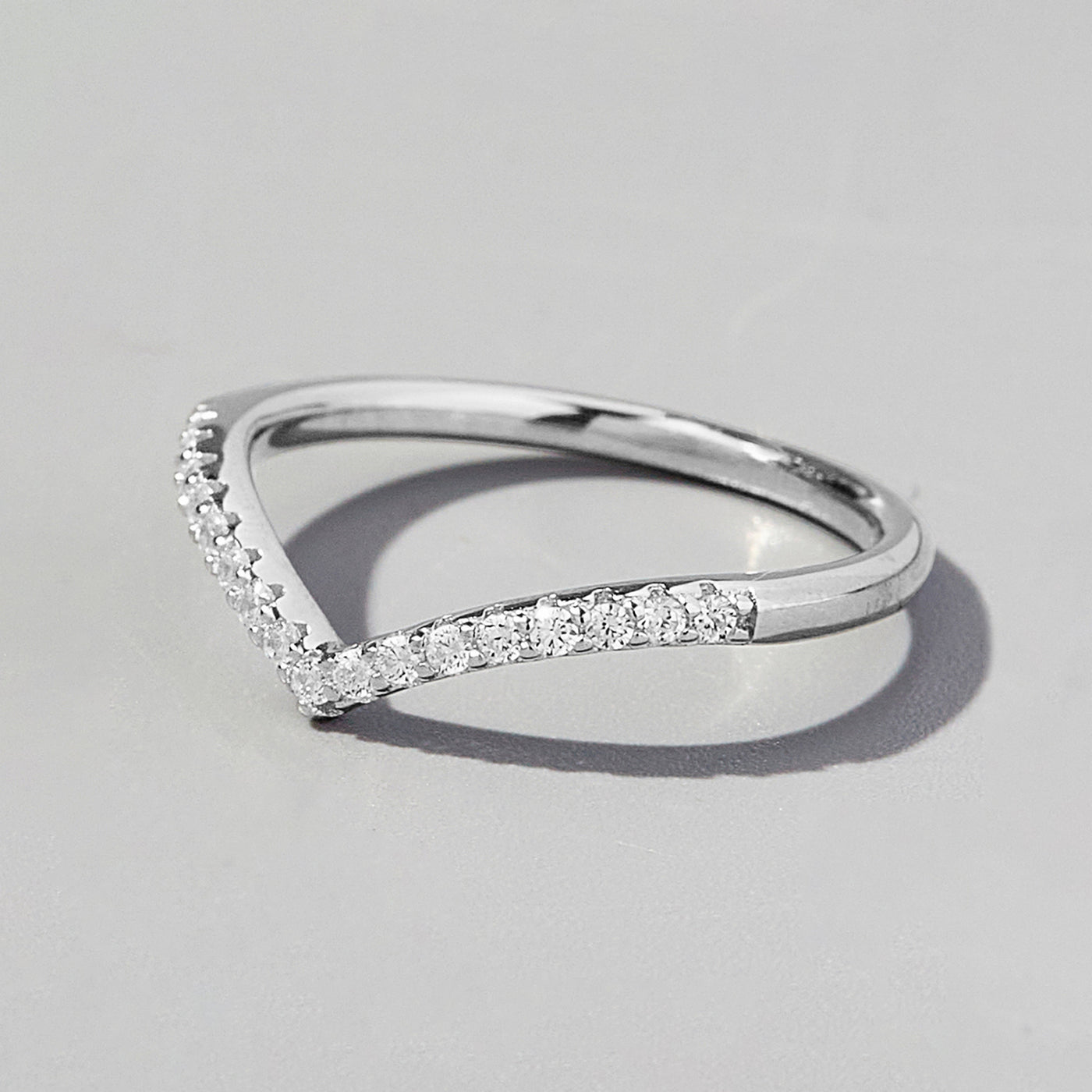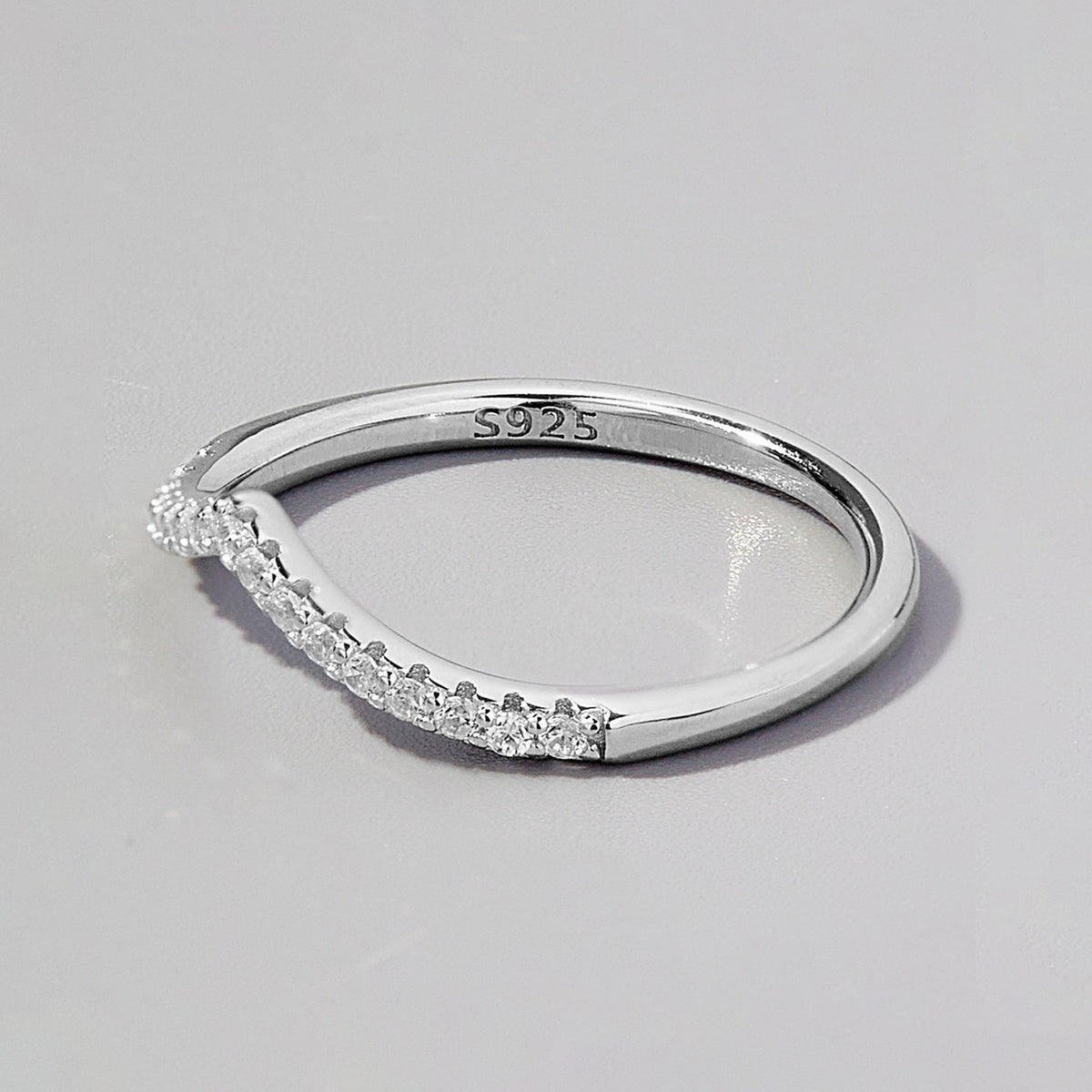 V Shape Inlaid Zircon 925 Sterling Silver Ring