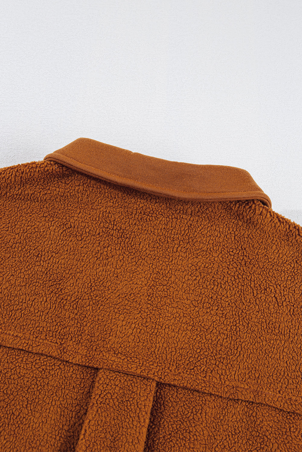 Pocketed Collared Neck Dropped Shoulder Jacket