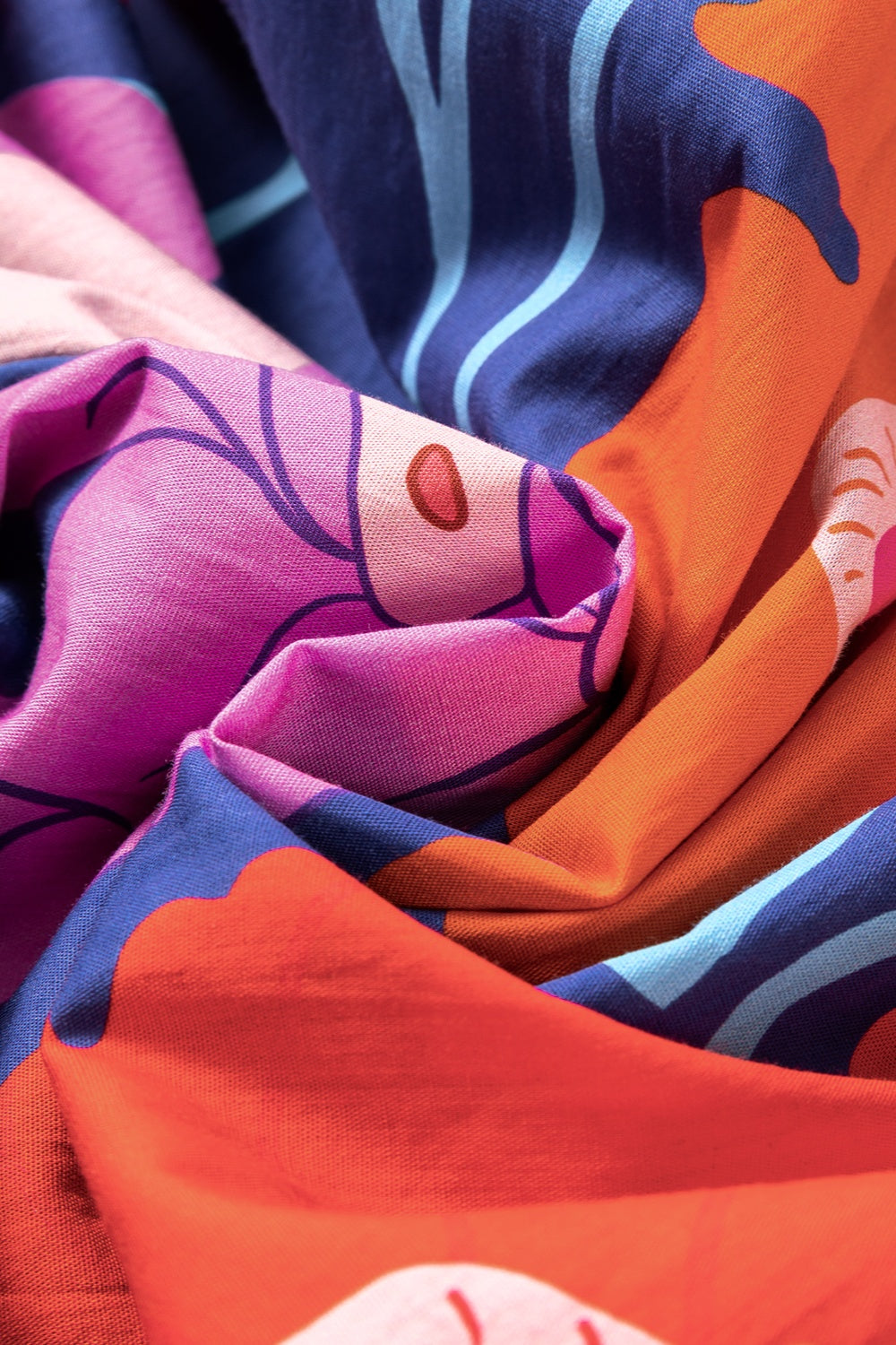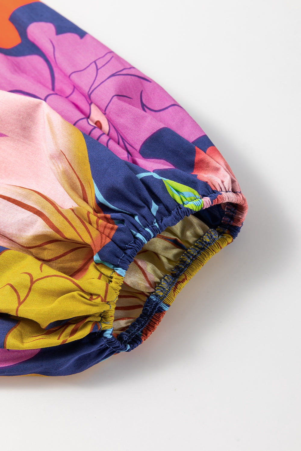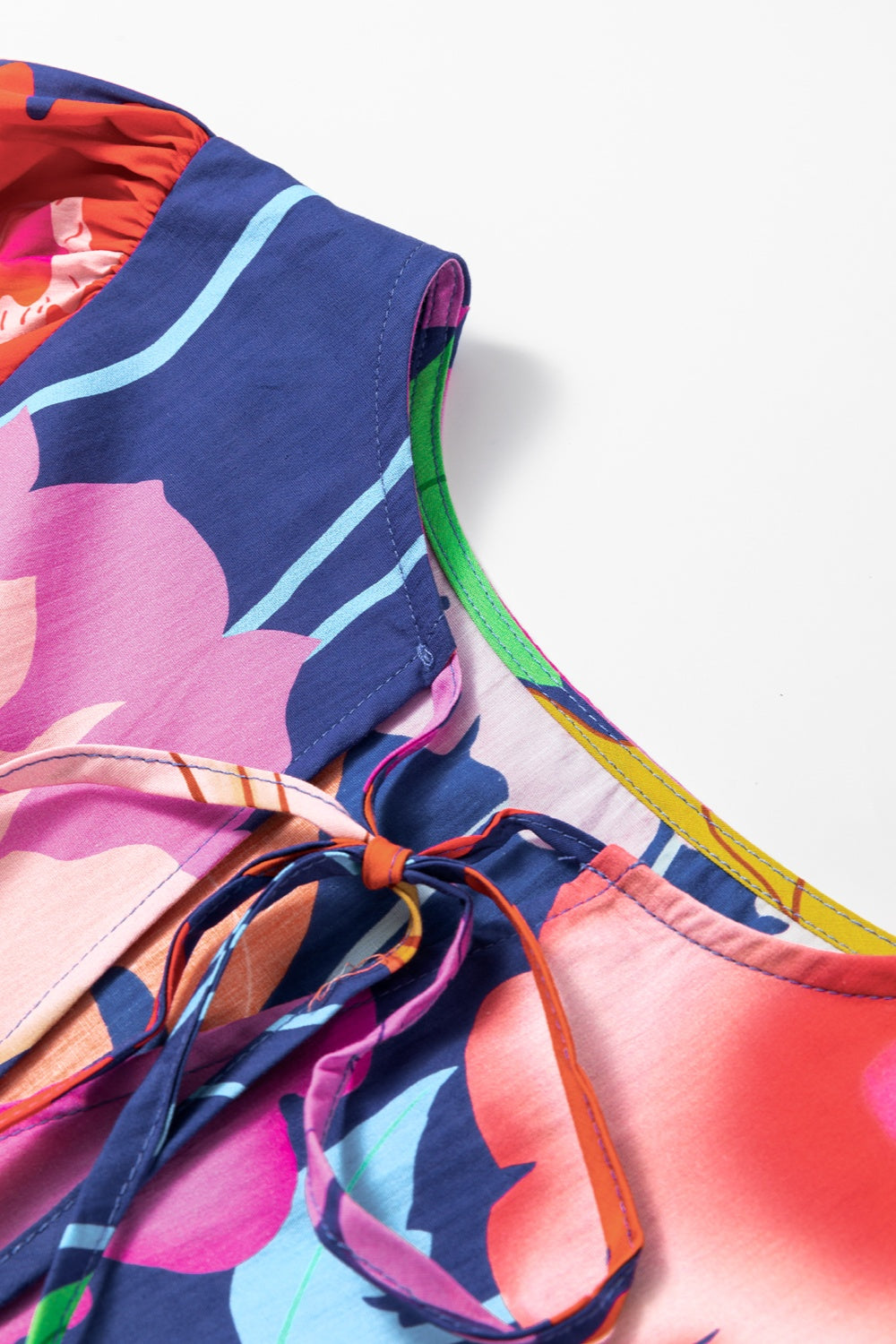 Plus Size Printed Tie Neck Long Sleeve Dress