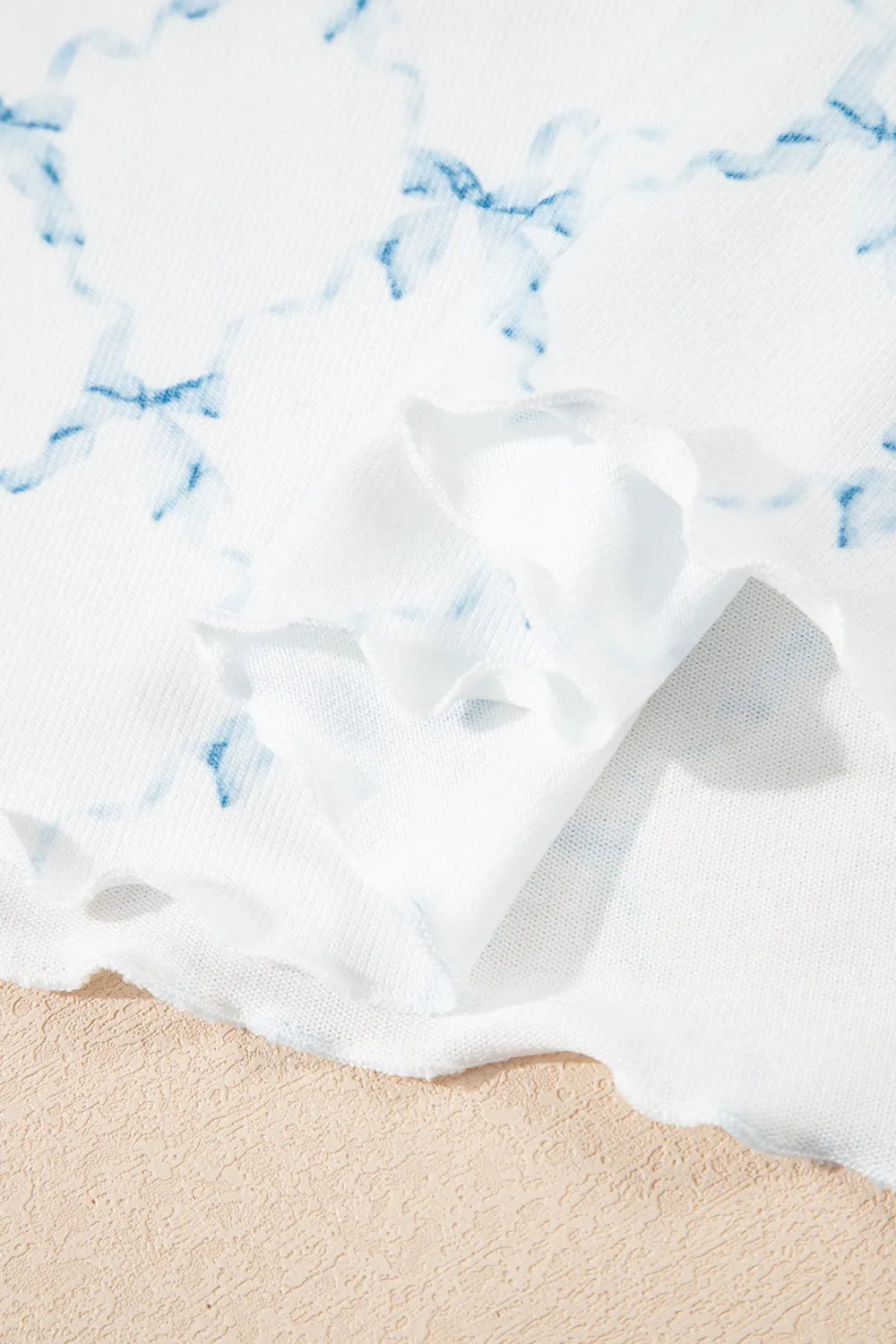 Printed Round Neck Top and Shorts Two-Piece Lounge Set