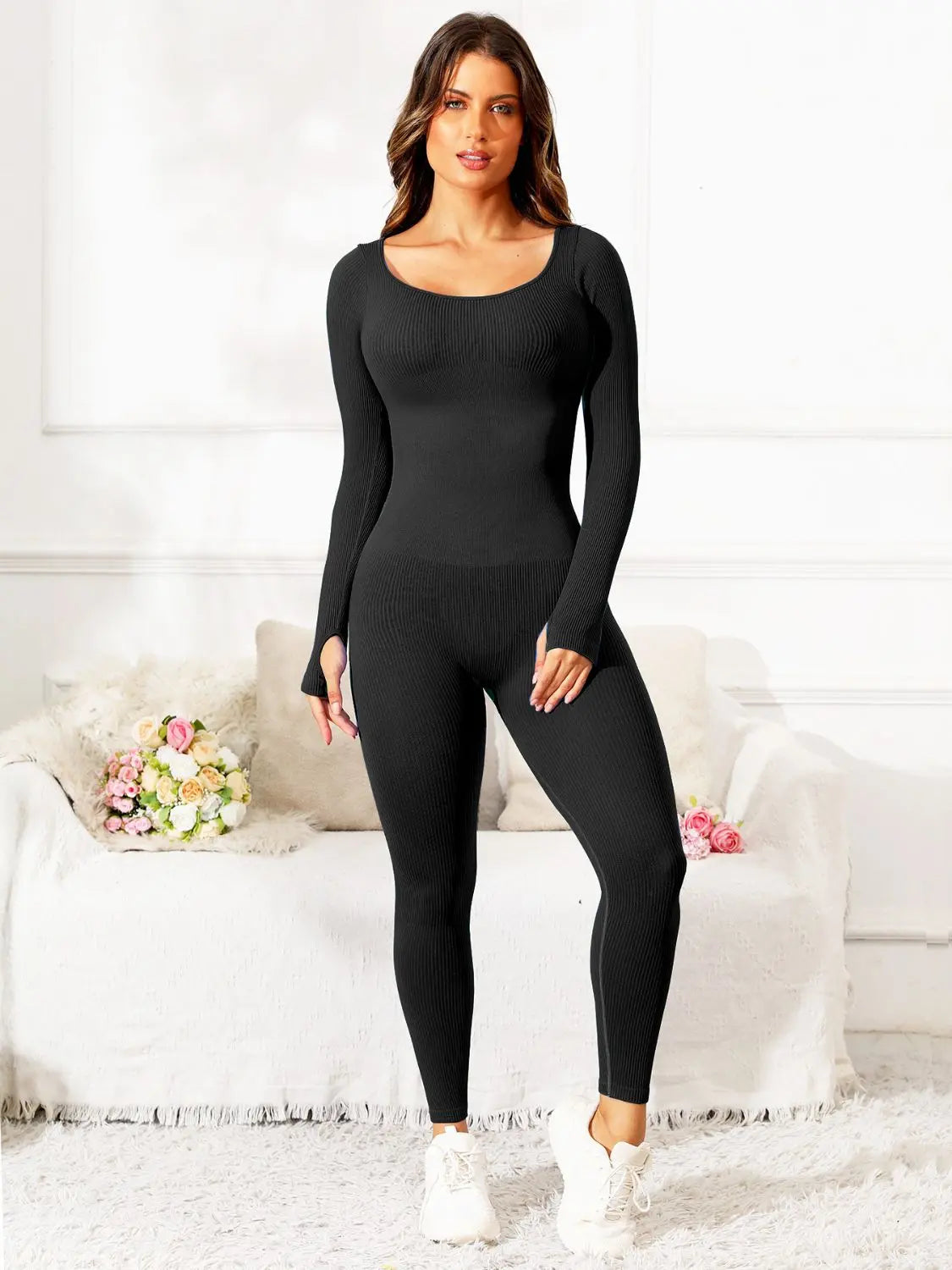 Scoop Neck Long Sleeve Active Jumpsuit